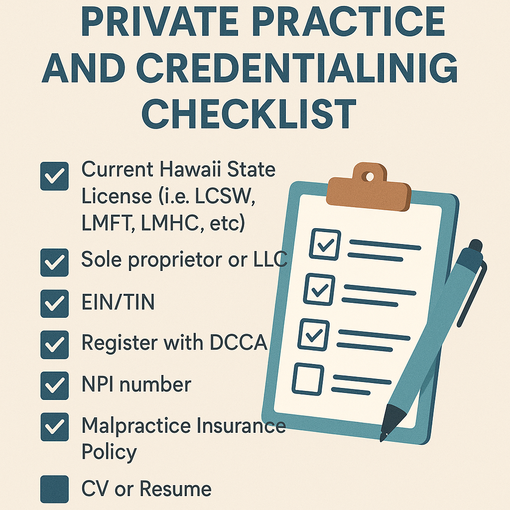 Private Practice and Credentialing Checklist